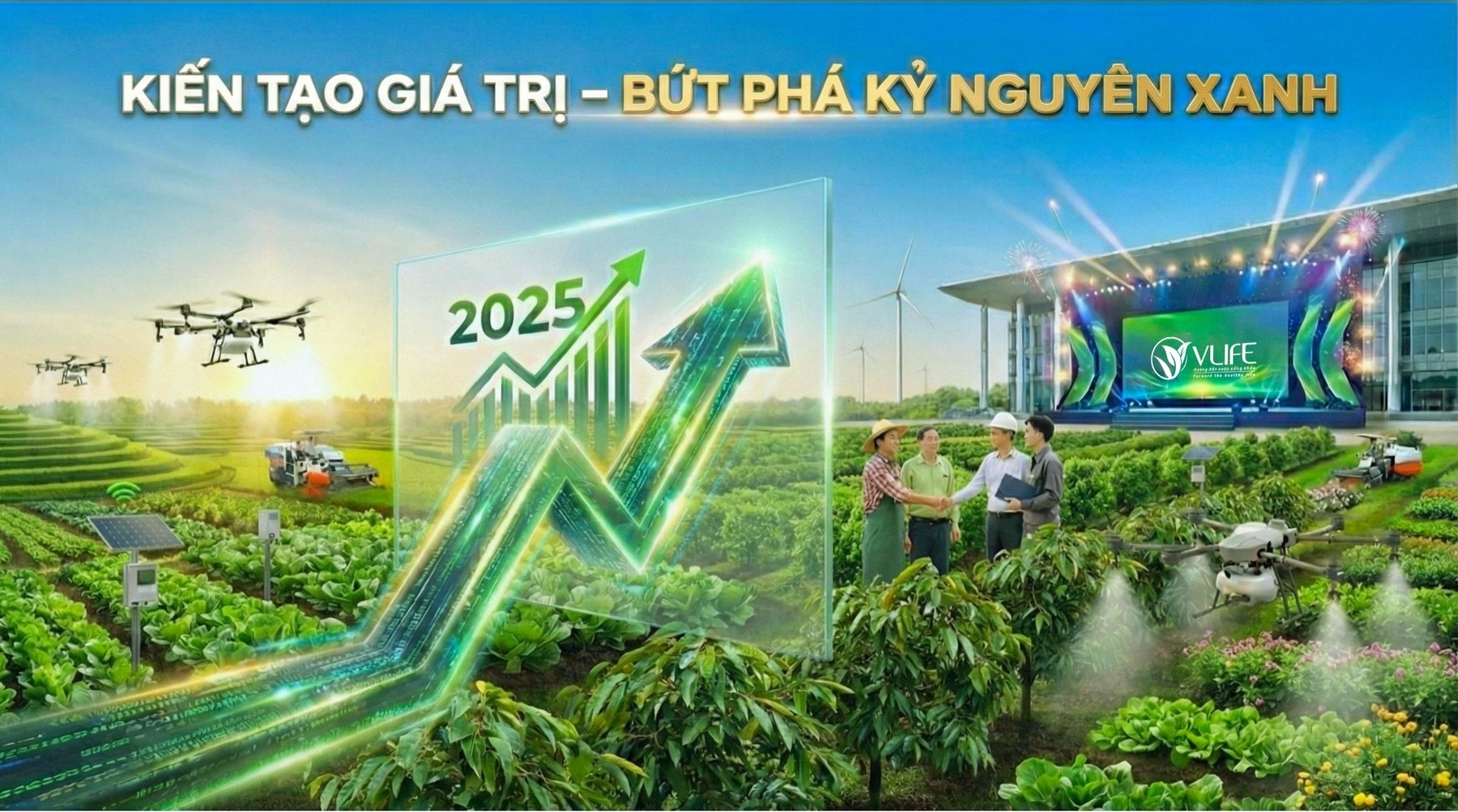 Là chủ đề của sự kiện HỘI NGHỊ KHÁCH HÀNG VLIFE NĂM 2025. VLIFE tiếp bước chuyển mình theo lịch sử của nông nghiệp Việt Nam. Chào đón năm 2026, dấu mốc khẳng định sự kiến tạo giá trị và bứt phá các trụ cột phát triển cùng quý khách hàng, phát triển nền “Nông nghiệp Xanh và Bền vững”.